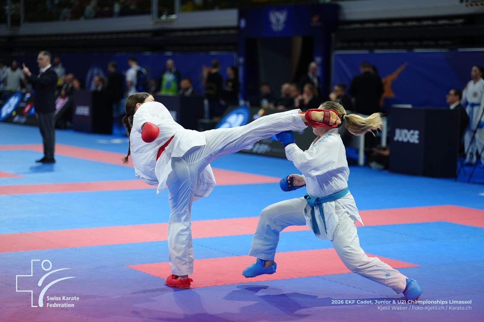 Mit den 53. Nachwuchs-EM (6. U21, 53. U18, 39. U16) in Limassol/Zypern, 6.-8. Februar, starteten die EKF-Europameisterschaften 2026. Austragungsort war das «Spyros Kyprianou Athletic Center», offizielles Team-Hotel (Atlantica Miramara Beach Hotel, HQ). Foto: Almina Arifagic.
