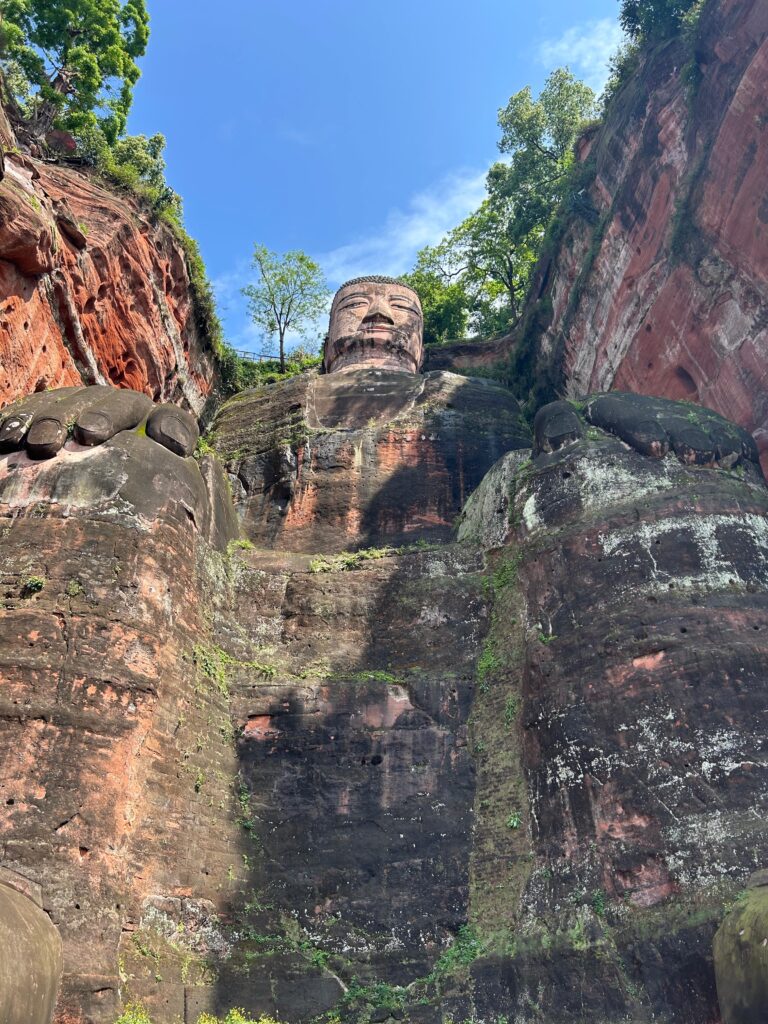 Der Grosse Buddha von Leshan ist die weltweit grösste Skulptur, 71 Meter, eines sitzenden Buddha aus Stein. Er wurde über einen Zeitraum von 90 Jahren, von 713 bis 803, aus dem Felsen geschlagen. Er gehört zum UNESCO-Weltkulturerbe. Er steht am Zusammenfluss dreier Flüsse.